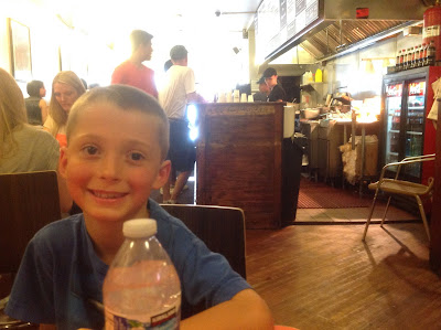 On the first day we went to the Liberty Bell. Ethan was most excited about this since we had talked about the Liberty Bell a lot before we went. Then we did a ton of walking. We walked first to the U.S. Mint. Although we hadn't planned on this one much, Ethan really enjoyed it. It was fun seeing them actually make the coins and too see how many coins they actually had in the building. Then we walked to the Betsy Ross House and Eifith's Alley (the oldest inhabited street in America). Then Christ's Church to see the spots where George Washington and Benjamin Franklin sat when they would go to church. It is still used as a functional church today and so I asked if people would try to get to church early to sit in George Washington's seat. The guide said that usually when someone is new they will do that, but after a while the excitement of the site wears off. While we were walking there was a point where Ethan started going really slow and was saying he just wanted to go back to the hotel to go swimming. Then a homeless guy on the street saw him wearing a Captain America t-shirt and hollered at him "Hey Captain America, your the boss!" Ethan really liked that so I called him the boss the rest of the trip and let him make as many decisions as possible to keep him motivated. We got Philly Cheesesteaks for lunch and they were really good - Ethan didn't like them though. Then we had our tour of Independence Hall. It was fun to talk about how some of the documents that I got to see with Julia were actually written and signed in that building that Ethan got to tour. Ethan got to pick dinner that night since he was "the boss" and he picked IHOP. Then back to the hotel for swimming. Similar to Julia, Ethan said that the swimming pool was his favorite part of the whole trip.